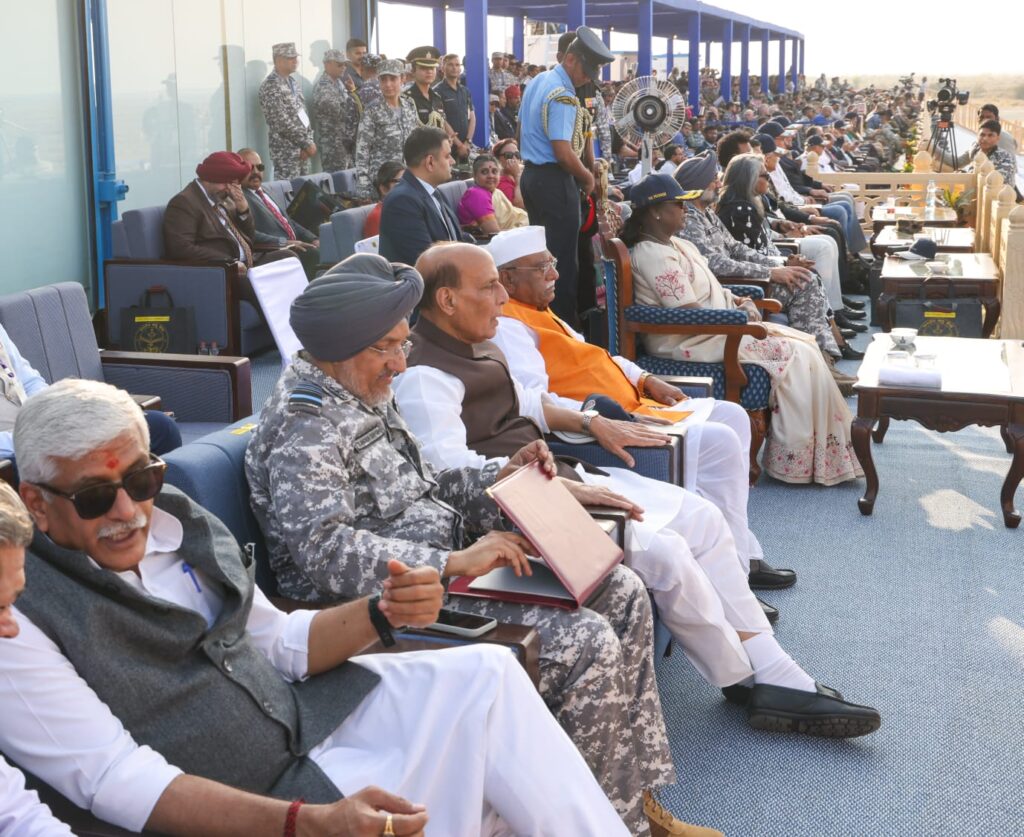 “अचूक, अभेद्य एवं सटीक” के अपने मूल मूल्यों से प्रेरित, वायुशक्ति–26 अभ्यास ने भारतीय वायु सेना के परिचालन सिद्धांतों, संयुक्त एकीकरण और अत्याधुनिक तकनीकी क्षमताओं को सुदृढ़ रूप से प्रमाणित किया। इस अभ्यास के माध्यम से भारत की व्यापक राष्ट्रीय शक्ति एवं रणनीतिक प्रतिरोध के एक प्रमुख स्तंभ के रूप में भारतीय वायु सेना की भूमिका की पुनः पुष्टि हुई।इस अवसर पर राजस्थान के माननीय राज्यपाल हरिभाऊ किसानराव बागडे, रक्षा मंत्री राजनाथ सिंह, नागर विमानन मंत्री किंजरापु राम मोहन नायडू, संस्कृति एवं पर्यटन मंत्री जी.एस. शेखावत, मुख्य सूचना आयुक्त राज कुमार गोयल, कैबिनेट सचिव डॉ. टी. वी. सोमनाथन, चीफ ऑफ डिफेंस स्टाफ जनरल अनिल चौहान, भारतीय वायु सेना व भारतीय नौसेना के कमांडर-इन-चीफ, तीनों सेनाओं के वरिष्ठ अधिकारी, केंद्र तथा राज्य सरकारों के वरिष्ठ अधिकारी, रक्षा सहायक अधिकारी, पूर्व वायु सेना प्रमुख, सम्मानित पूर्व सैनिक, मित्र देशों के रक्षा अटैचेस, भारतीय व अंतरराष्ट्रीय मीडिया प्रतिनिधि और बड़ी संख्या में स्कूली छात्र-छात्राएं उपस्थित रहे।