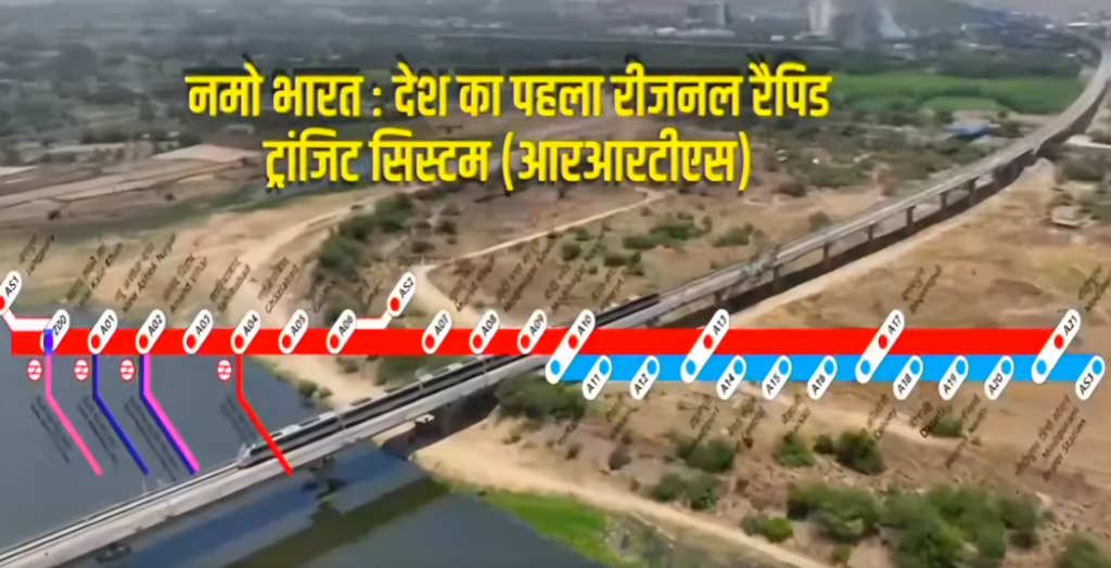 - कुल 16 स्टेशन: सराय काले खां, न्यू अशोक नगर, साहिबाबाद, गाजियाबाद, मुरादनगर, मोदीनगर, मेरठ साउथ, शताब्दी नगर, मोदीपुरम आदि।