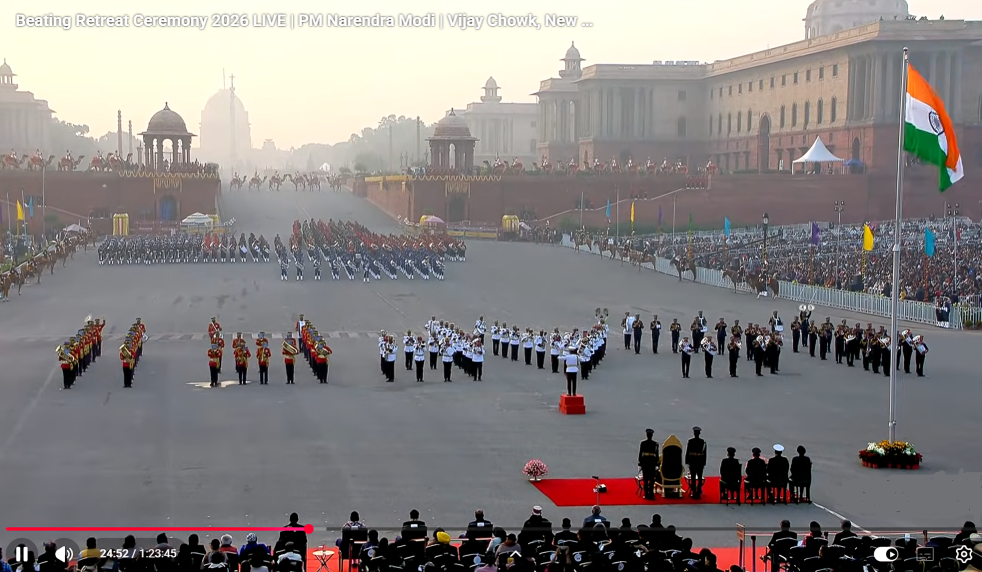 विजय चौक पर शाम 6:15 बजे शुरू होने वाला यह 50 मिनट का यह समारोह सैन्य अनुशासन, एकता और राष्ट्रीय गौरव का प्रतीक है, जो गणतंत्र दिवस की परेडों के बाद शांति और समापन का संदेश देता है। केवल दो बार (2001 भूकंप और 2009 में राष्ट्रपति वेंकटरमण के निधन पर) इसे रद्द किया गया था।